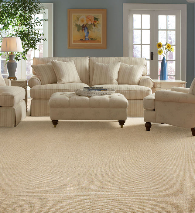 This handsome product for Masland was inspired by the beautifully tailored fabrics found in menswear jackets and suiting. Bedford Tweed is constructed of 100% Wool. Two heathered yarn colors are combined in a textured loop construction creating nine nature inspired colorations, from two tone creams to the latest taupe and grey combination.