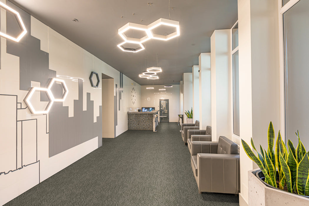 The detailed arrangement of colorful solution dyed yarn was purposed to create a lively, all-over design composition. Adding a unique texture through the combination of loop and tip-shear construction, “CIRCUITRY” is a charming yet durable addition for any corporate, Hospitality, or professional office application.