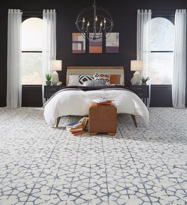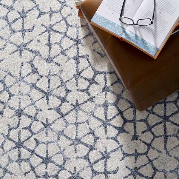 Piccadilly, a handmade collar of intricate lace popular during the Tudor era, still inspires today. A single lace motif is made modern with geometry and scale in an intentionally distressed landscape. A face-to-face Wilton in a varied palette adds layers of intrigue in modern and traditional interiors alike.